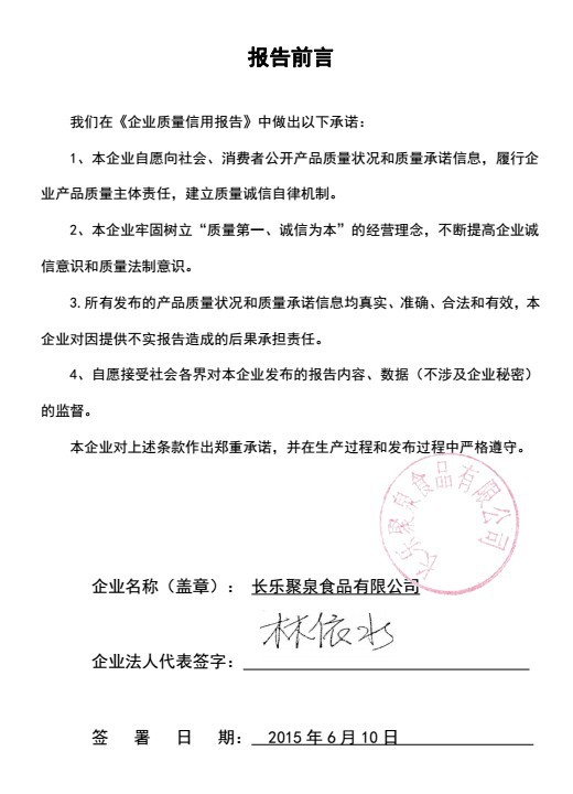 2015年年度質(zhì)量誠(chéng)信報(bào)告